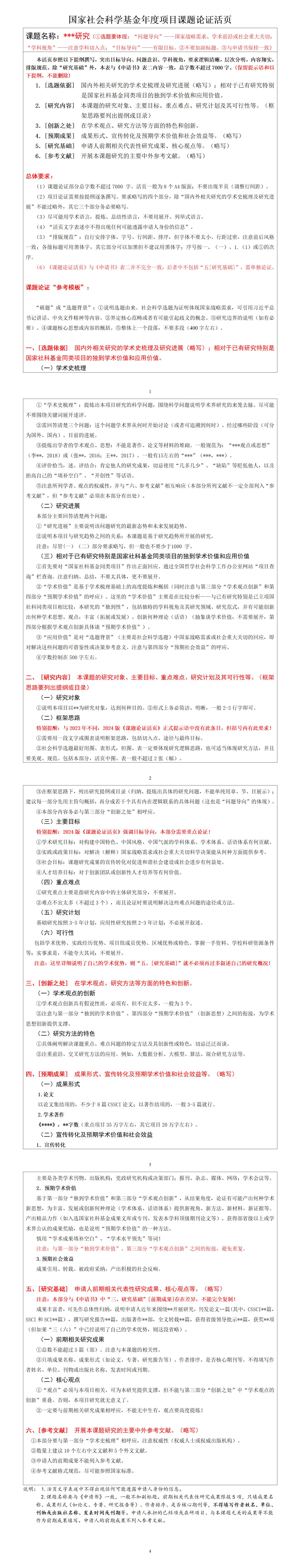 《2024年国家社科基金年度项目课题论证活页》