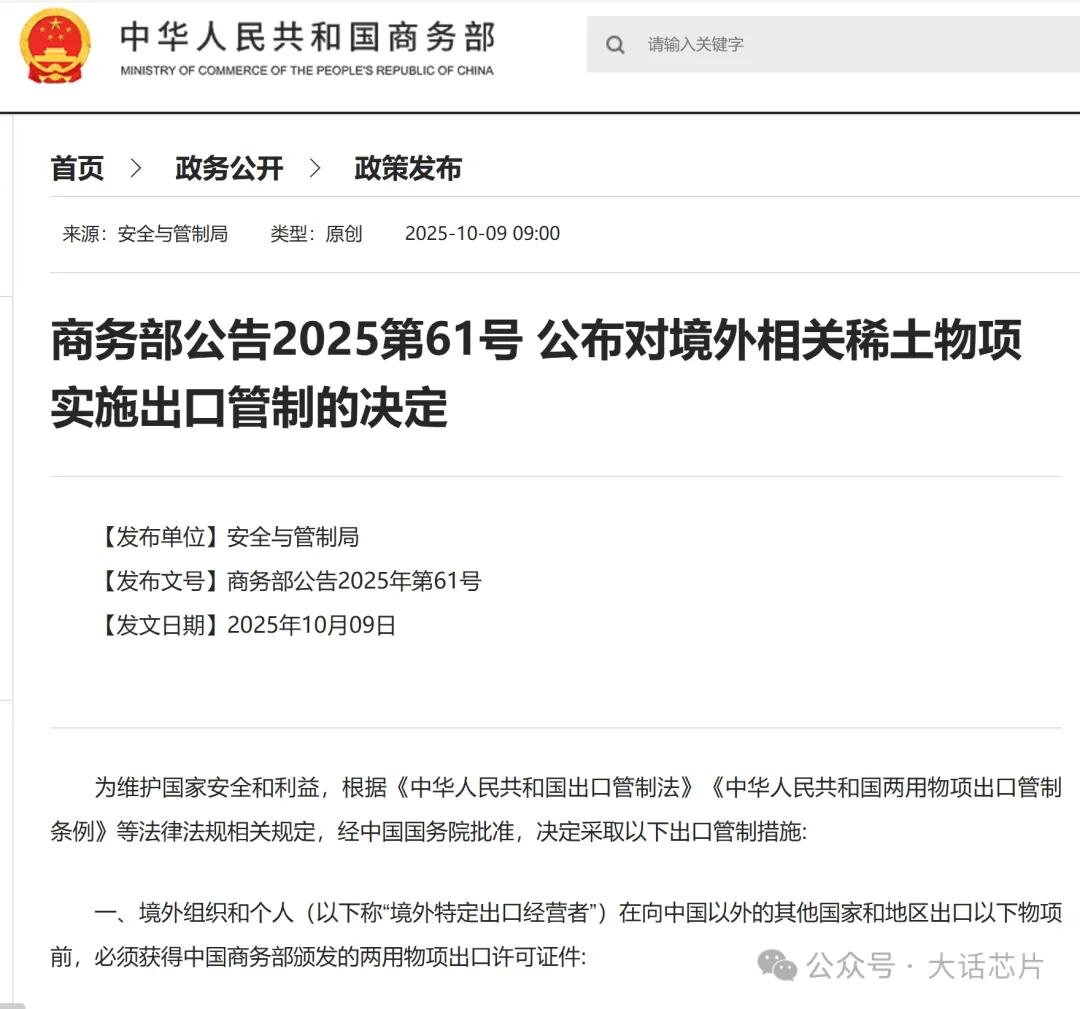 中国此次稀土管制措施的核心创新在于建立了一套基于"成分追溯"的管制体系。根据新规定,凡是含有中国稀土成分超过0.1%的境外制造产品,其出口都需要获得中国许可。这一规定的影响范围远超预期:台积电在美国亚利桑那州的晶圆厂、ASML的光刻机生产线、英特尔和三星的先进存储器制造设施,只要使用了中国稀土制造的精密组件,其产品出口都可能受到中国出口管制的影响。