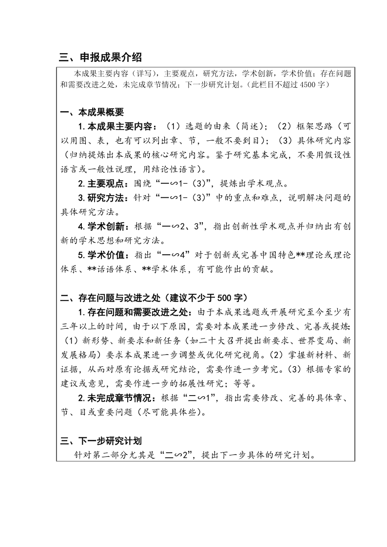 为了提高申报质量,提出一个修改后的“申报成果介绍”简化模版,供你参考!