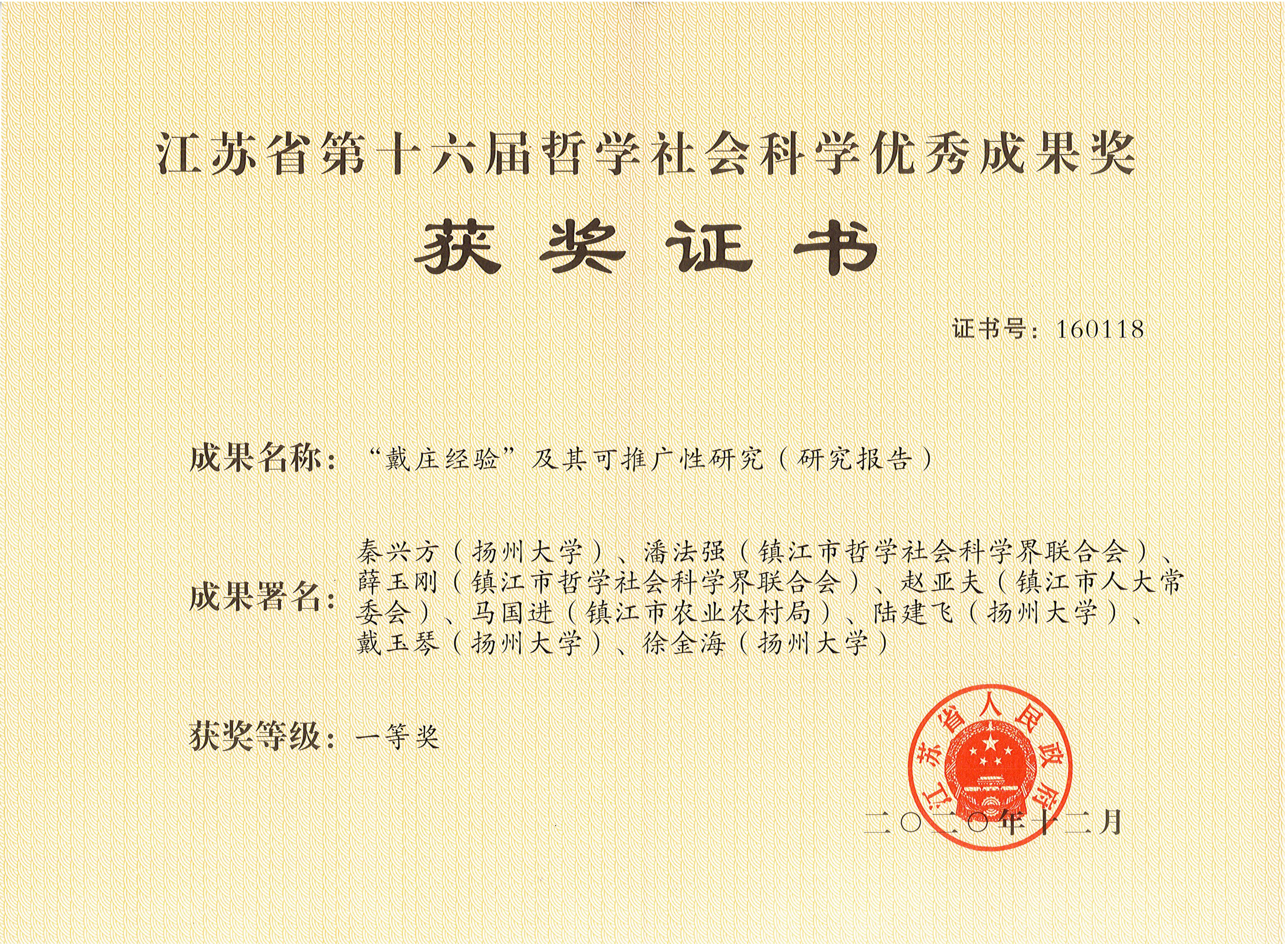 授奖部门:江苏省人民政府