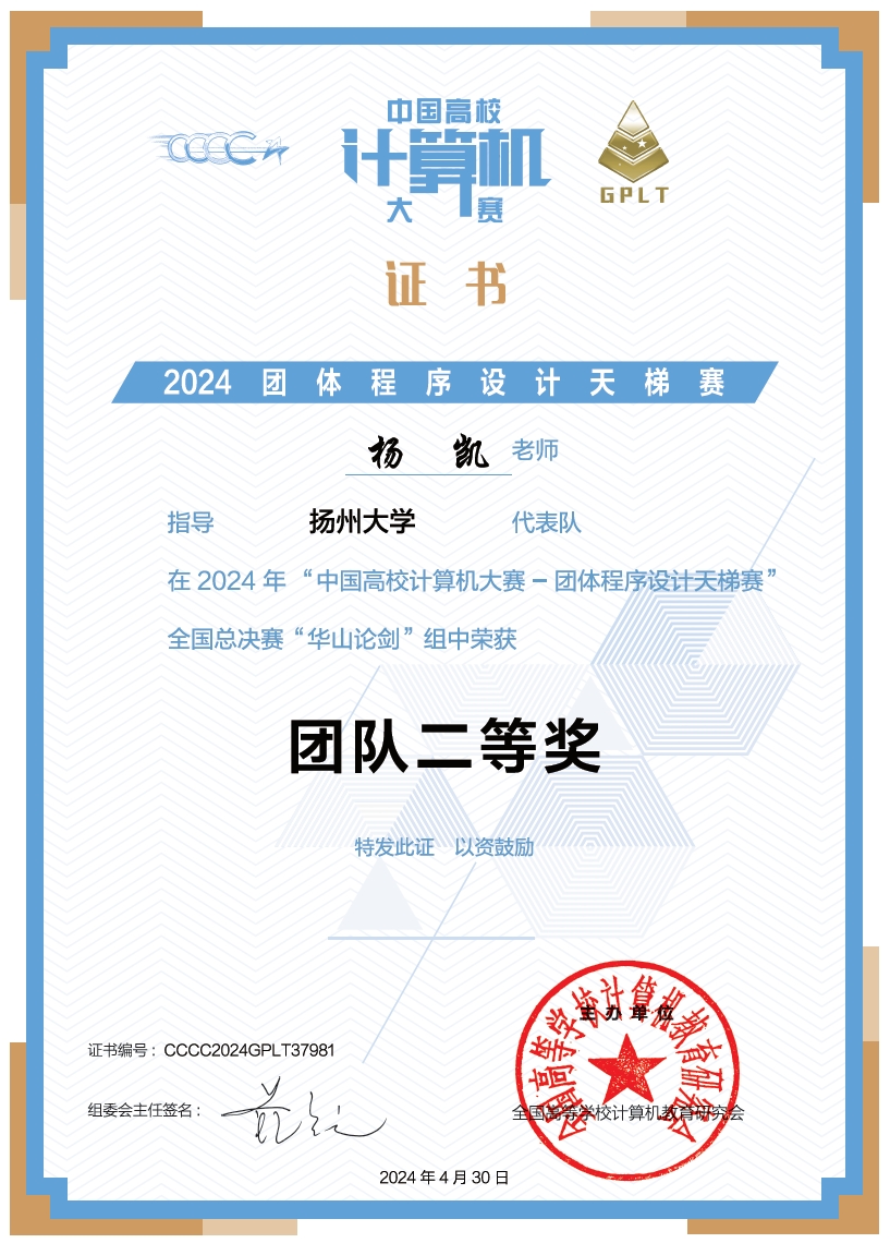 2024年团体程序天梯赛全国二等奖